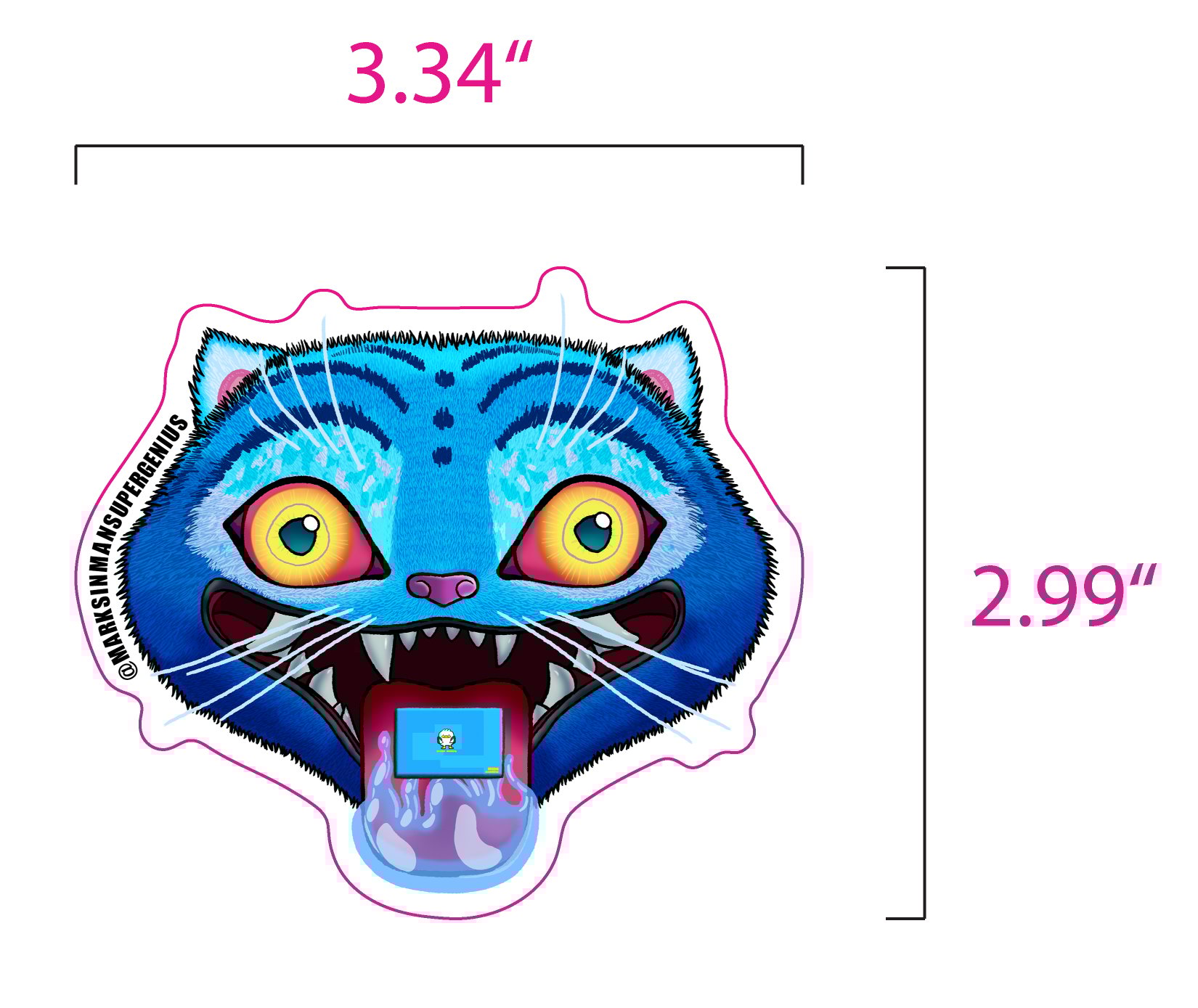 Derpy Tiger – The size is 3.34 x 2.99 in
