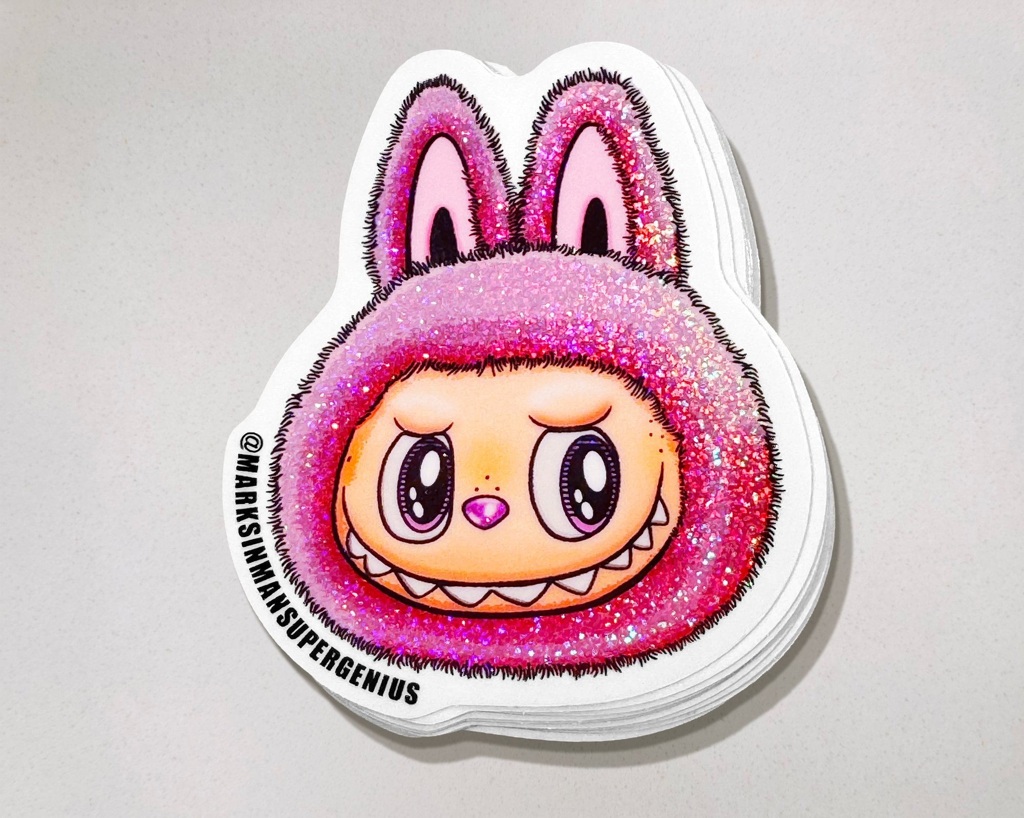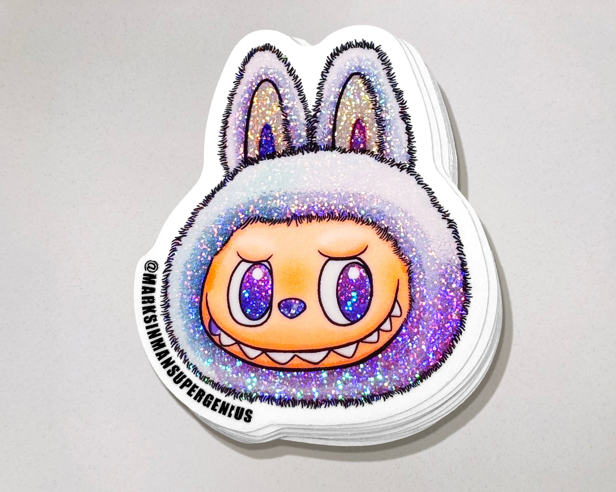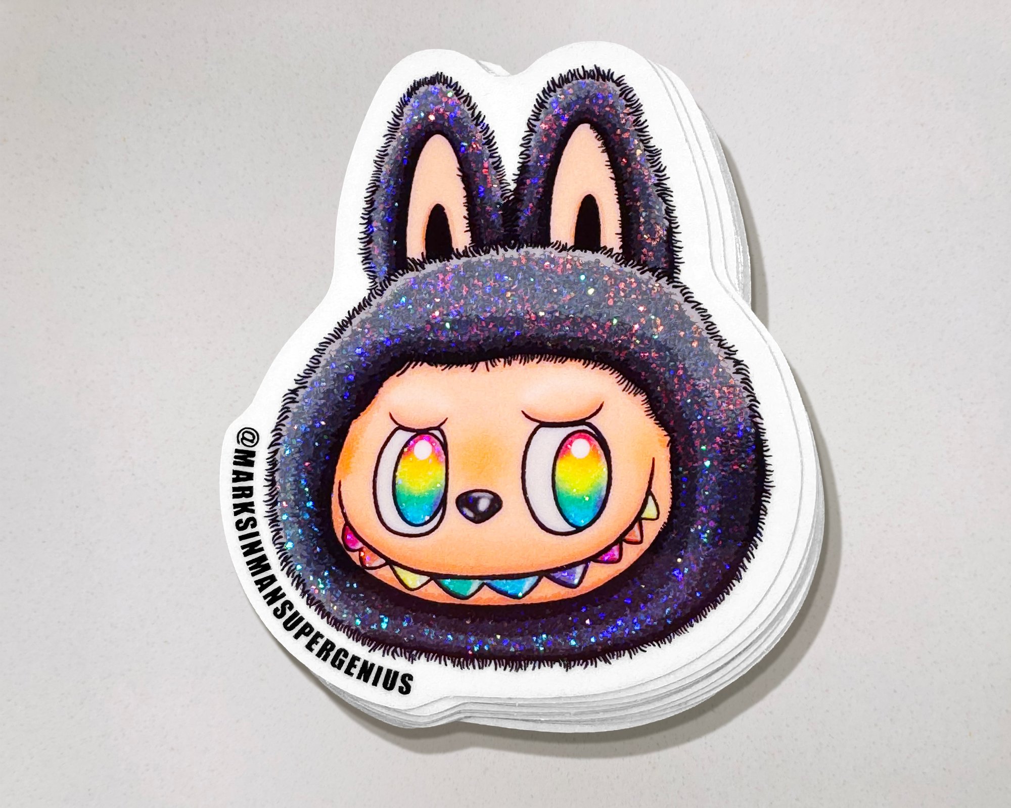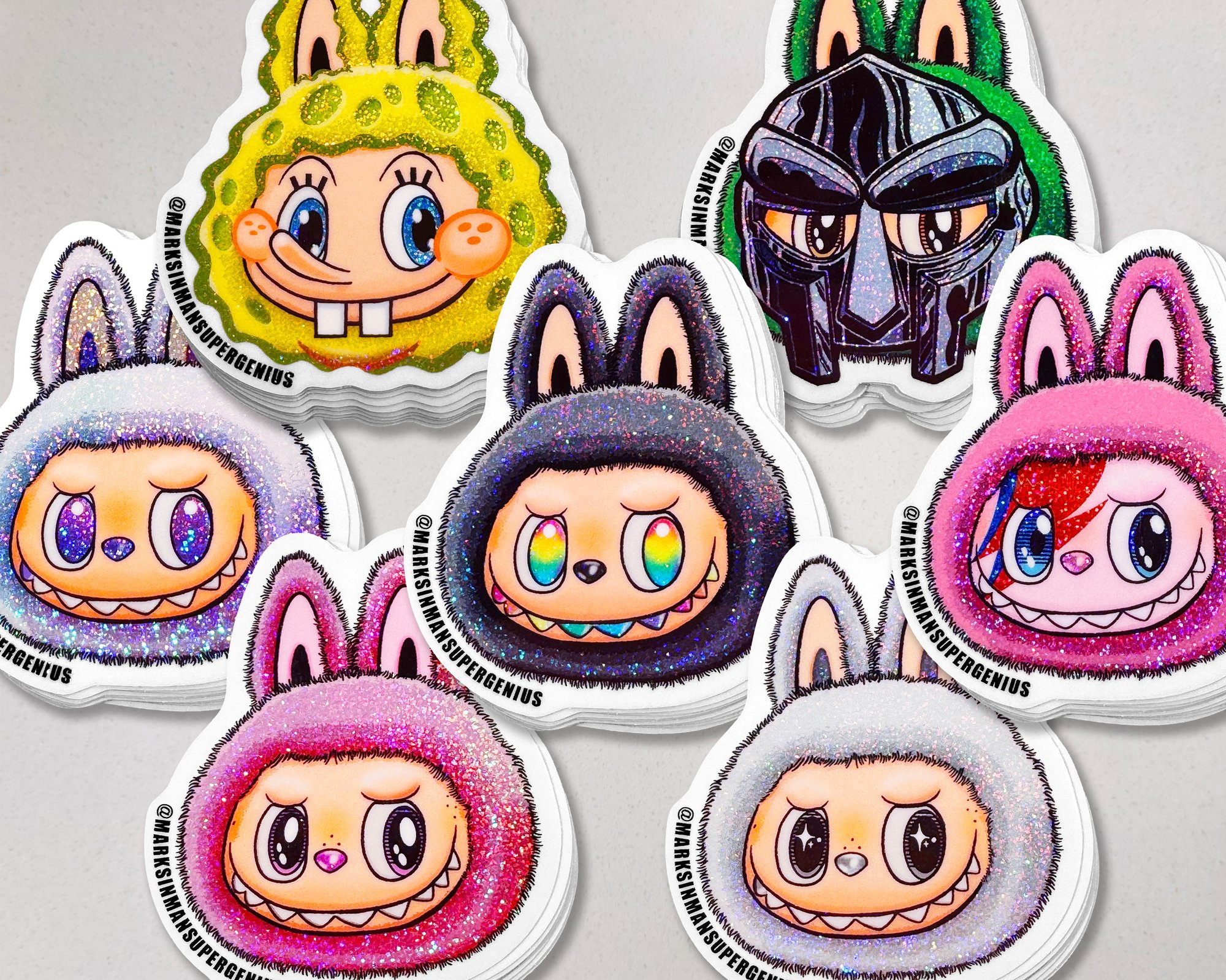• 7pc Stardust Glitter Sticker Combo – 1x of each – Luck, Rainbow, Pink, White, LaBowie, MF BUBU, and SpongeBubu