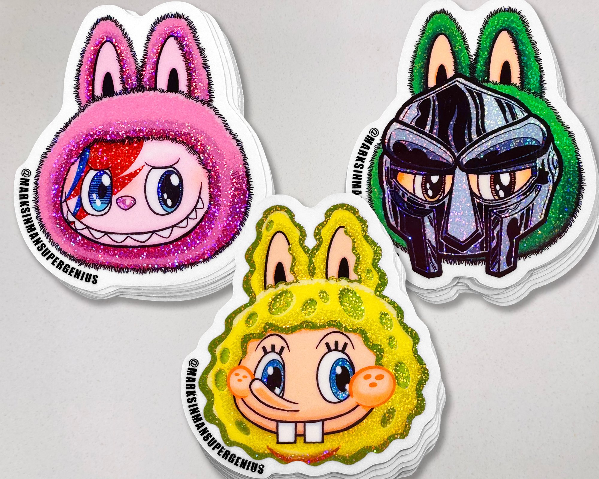 • 3pc Stardust Glitter Sticker Combo – 1x of each – LaBowie, SpongeBubu, and MF BUBU